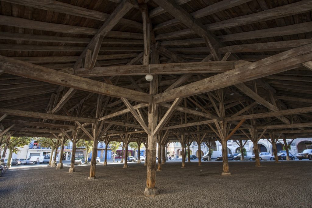 La halle et l’église sont ses principaux monuments médiévaux. Soutenue par 38 poteaux, la halle charpentée accueille toujours le marché et sa morphologie reste celle du Moyen Âge.