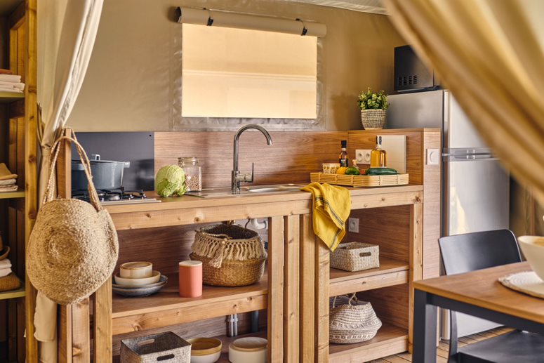 Tentes lodges sans sanitaires de 23m² plus terrasse privative.