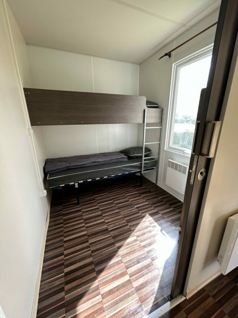 Les mobil-home sont composés de 2 chambres, d’un séjour-cuisine équipé, d’une terrasse intégrée, et sont proposés pour des familles de 4 personnes. Chaque mobil-home possède une terrasse privative et un emplacement véhicule. Ce sont des mobil-home à toit pentu d’environ 28m².