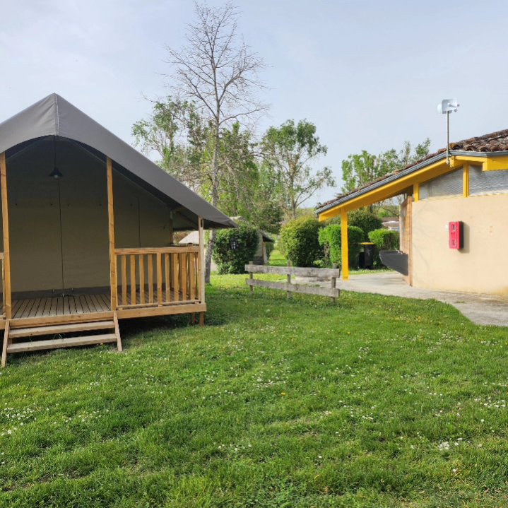 Nous vous proposons, depuis mai 2023, la possibilité de louer des tentes lodges (sans sanitaires à l’intérieur). Celles-ci peuvent accueillir jusqu’à 7 personnes :